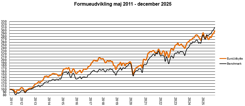 Afkast maj 2011 til og med december 2025: + 198,3 %